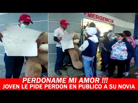 Joven le Pide Perdón A Su Novia En Publico Con Un Cartel Y Un Gran Oso De Peluche